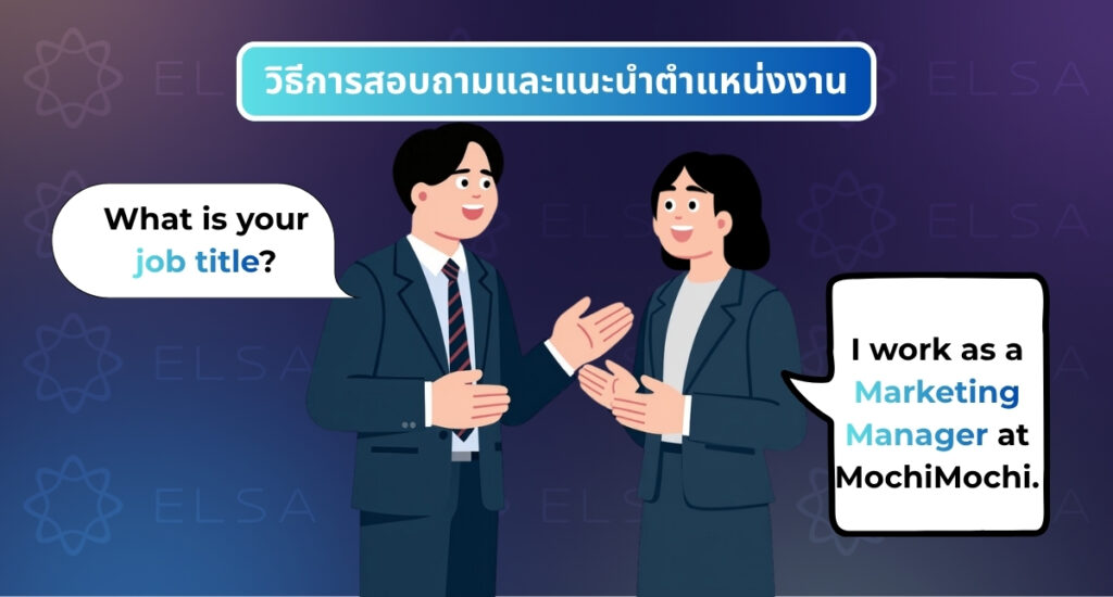 ตัวอย่าง: I work as a Marketing Manager at MochiMochi. - My job title is + job title