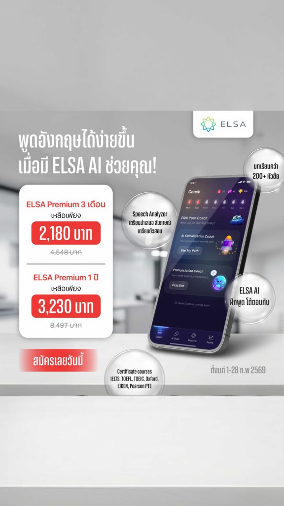 กรอกโค้ด DDAY เพื่อรับดีลสุดเอ็กซ์คลูซีฟสำหรับนักเรียน ELSA เท่านั้น