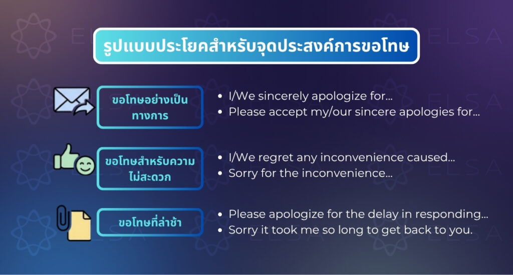 อีเมลภาษาอังกฤษ ตัวอย่างเรื่องขอโทษ