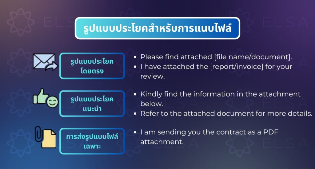 | Attached to this email is … | เอกสารที่แนบมากับอีเมลนี้คือ … |