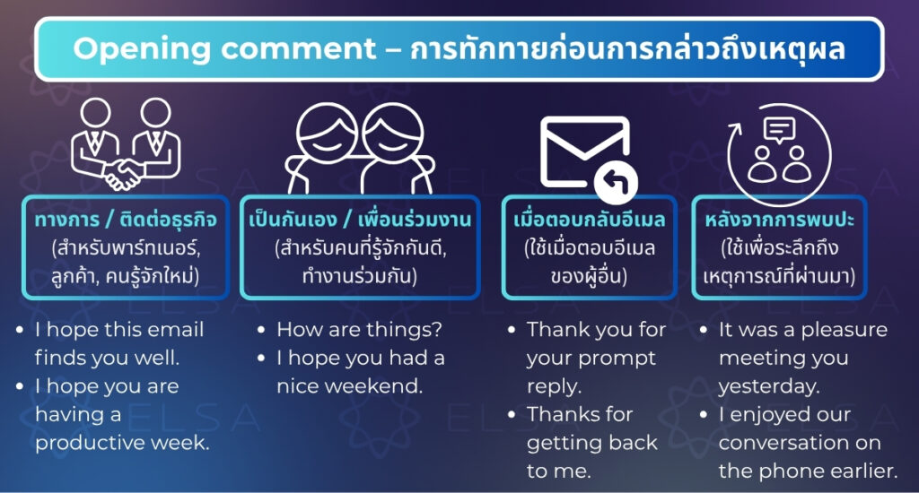 Opening comment – การทักทายก่อนการกล่าวถึงเหตุผล