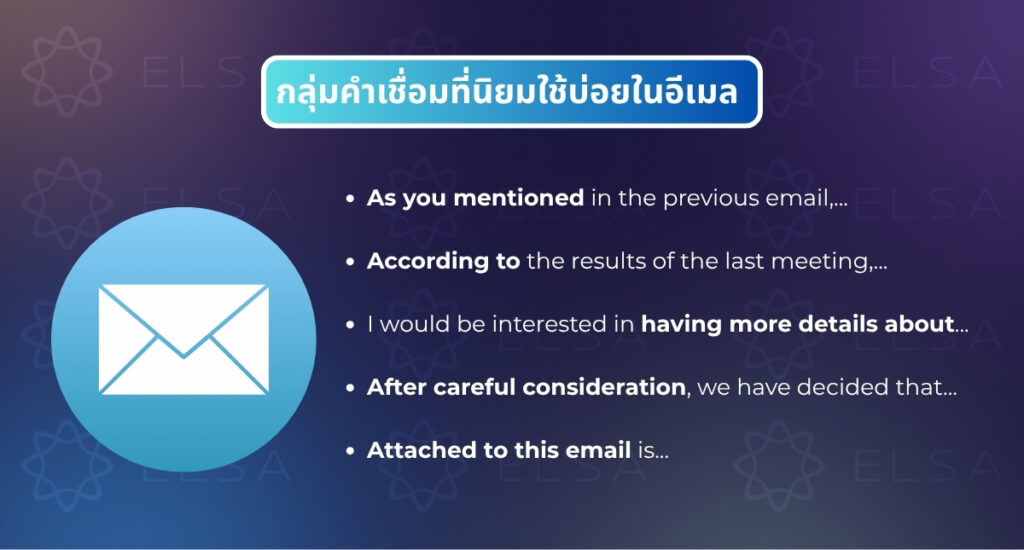 กลุ่มคำเชื่อมที่นิยมใช้บ่อยในอีเมล