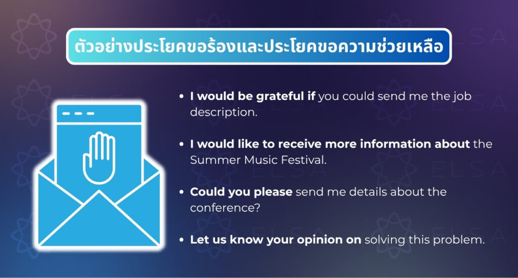 ตัวอย่างประโยคขอร้องและประโยคขอความช่วยเหลือ