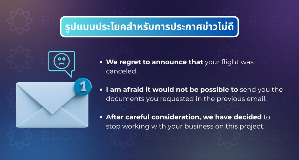 รูปแบบประโยคสำหรับการประกาศข่าวไม่ดี