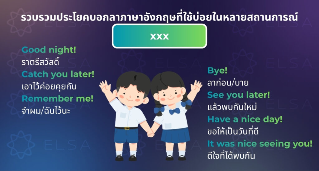 >>> Read more: ประโยคภาษาอังกฤษ เพื่อการสื่อสารพื้นฐานที่ใช้ในการบอกลา
