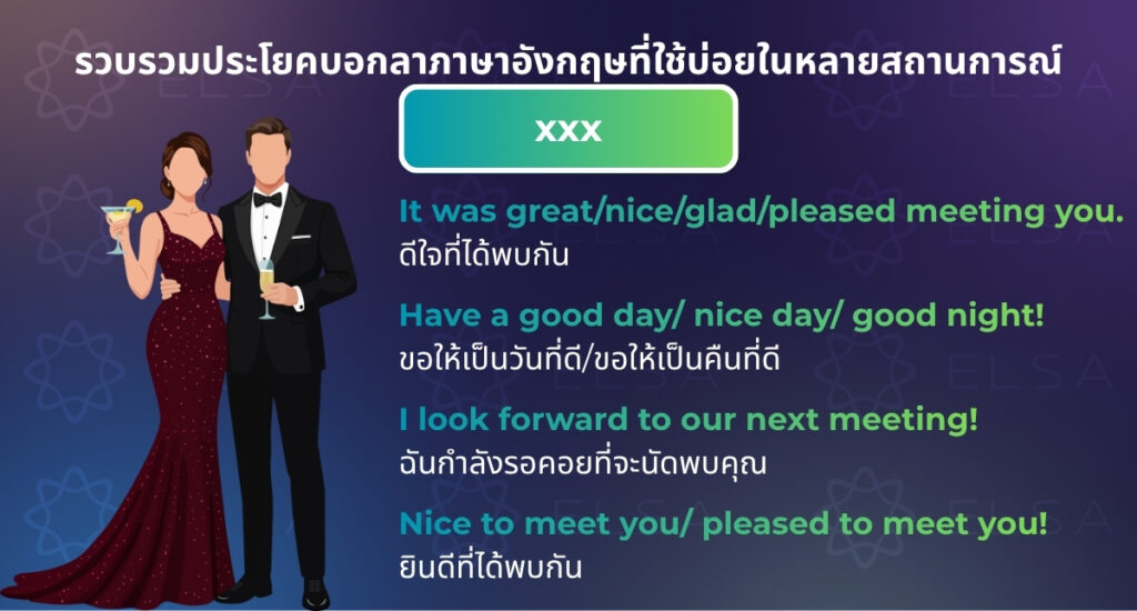 คุณสามารถใช้ “Goodbye”, “Have a nice day” หรือ “I look forward to seeing you again”