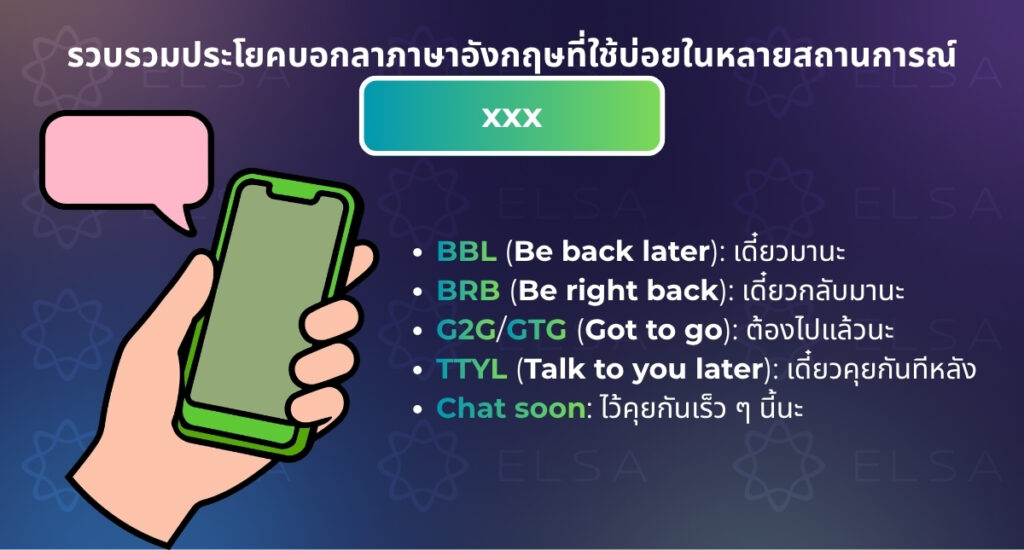 - TTYL (Talk to you later): เดี๋ยวคุยกันทีหลัง