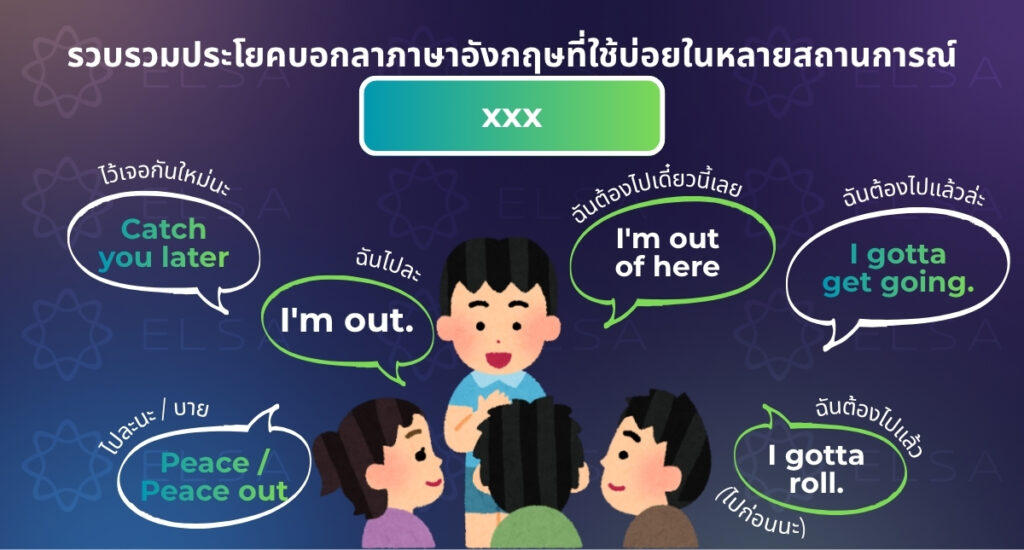 คุณสามารถใช้ “Catch you later”, “Peace out” หรือ “Gotta roll” (สำหรับเพื่อนสนิท)