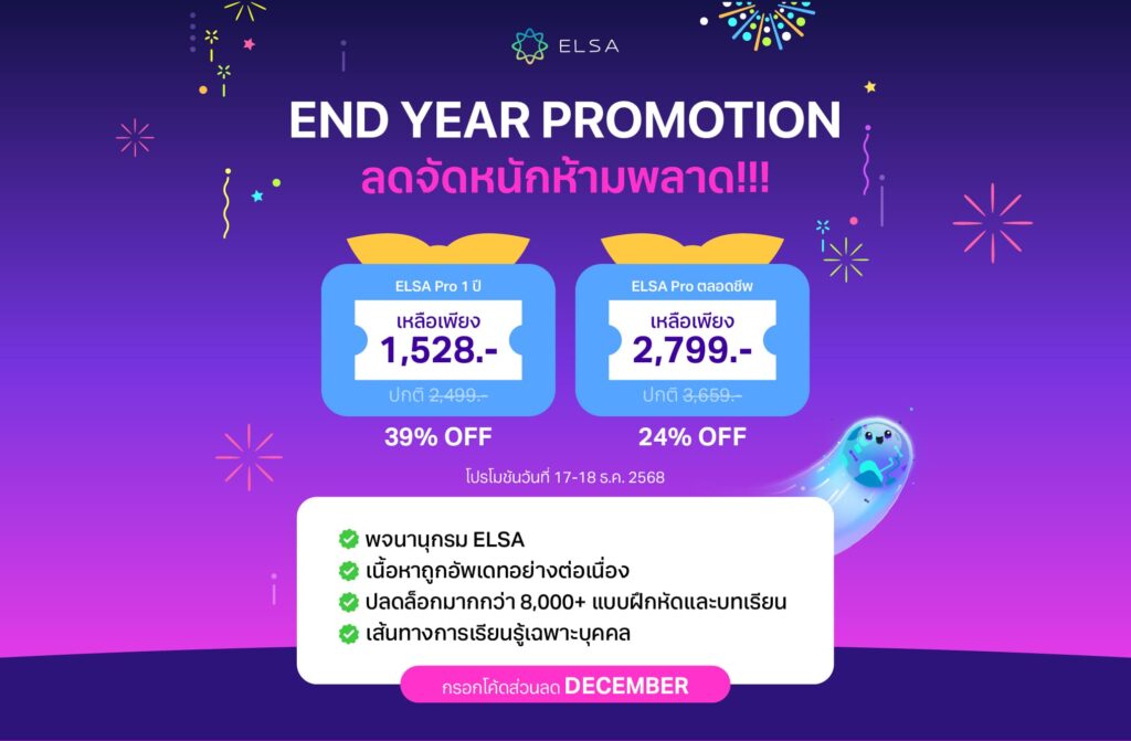 | ELSA Premium 3 เดือน | 4.548 บาท | 2,180 บาท |