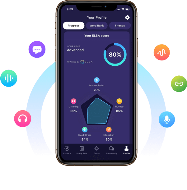 ความแตกต่างที่ใหญ่ที่สุดของ ELSA Speak คือการมีเทคโนโลยีรู้จำเสียงพูดชั้นนำระดับโลกที่เป็นเอกสิทธิ์เฉพาะ ซึ่งสามารถระบุข้อผิดพลาดแบบเรียลไทม์และเสนอวิธีแก้ไขอย่างถูกต้องถึงแต่ละพยางค์ พวกเรารับฟังและให้ความคิดเห็นกับผู้เรียนอย่างเช่นพวกเขามีเทรนเนอร์ออกเสียงที่คอยติดตามตลอด 24 ชั่วโมง