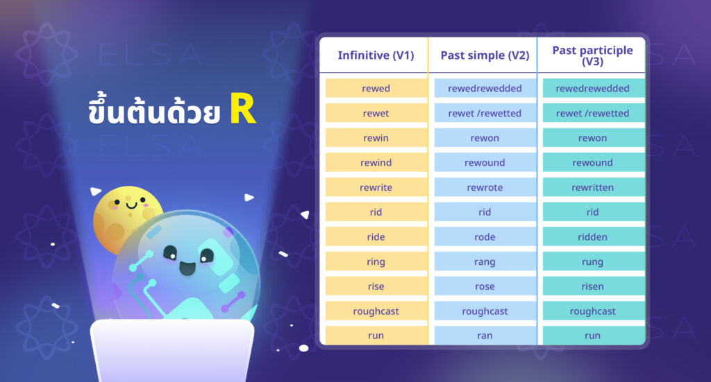 Irregular Verbs มักจะเป็นประเด็นทางไวยากรณ์ที่ “ปวดหัว” เสมอ เพราะว่ามันเรียนยากแต่ลืมง่าย มาทบทวนและเรียนรู้ Irregular Verbs ทั้งหมด พร้อมคำแปล กับ ELSA Speak ผ่านตารางด้านล่างนี้เลย
