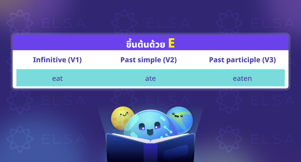 | eat /iːt/ | ate /eɪt/ | eaten /ˈiːtn/ | กิน |