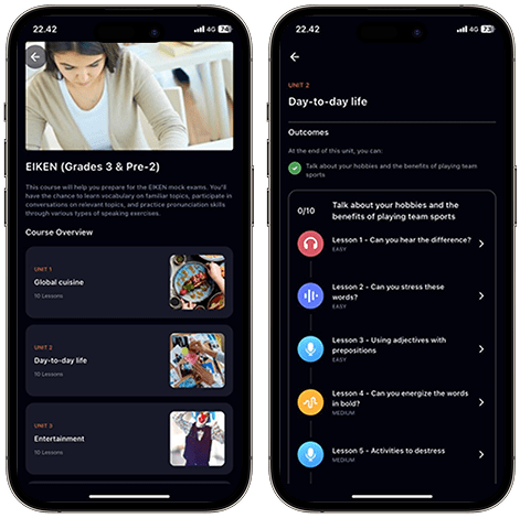 พร้อมทั้งพัฒนาทักษะการพูดภาษาอังกฤษของคุณด้วยเกมและบทเรียนที่ออกแบบมาโดยเฉพาะสำหรับ EIKEN
