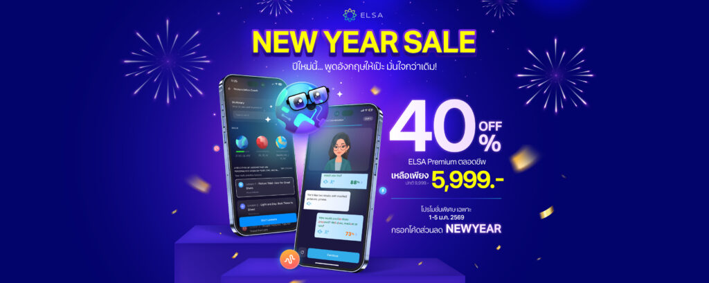 ขณะนี้ ELSA Speak กำลังเปิดจำหน่ายแพ็คเกจ ELSA Premium 1 ปีในราคาสุดพิเศษ ถูกที่สุดตั้งแต่เปิดตัวมา! รีบสมัครตอนนี้ เพื่อไม่พลาดโอกาสสุดหายากนี้ เปิดจำหน่ายถึงเวลา 23:59 น. วันนี้เท่านั้น!